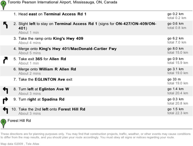 Directions to Upper Canada College from Toronto Pearson International Airport